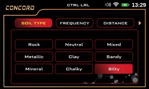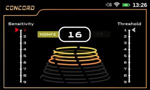 Concord offers the possibility of detecting targets through a modern and simplified interface that includes ease of use, multilingualism, a smooth visual menu system and screens that provides the user with the necessary tools to adjust the settings of the search process and see the results on the device screen through visual indicators accompanied by an audio feedback